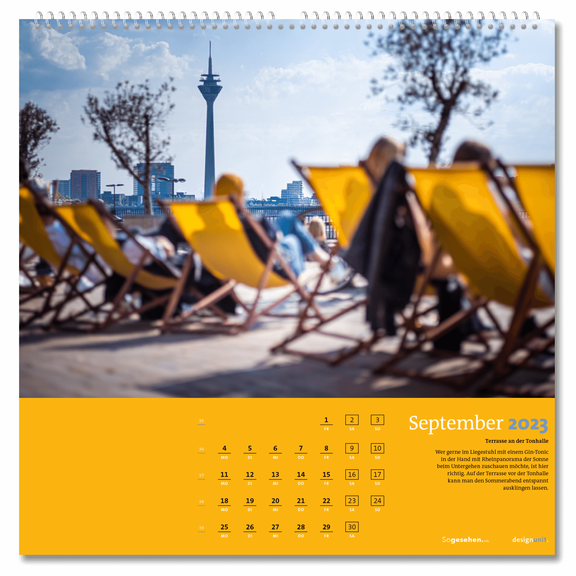 Wenn Sie für 2024 einen Kalender mit Ihrem Unternehmensbranding realisieren möchten, sprechen Sie uns an. Die Planungen für den Düsseldorf-Kalender 2024 laufen bereits.